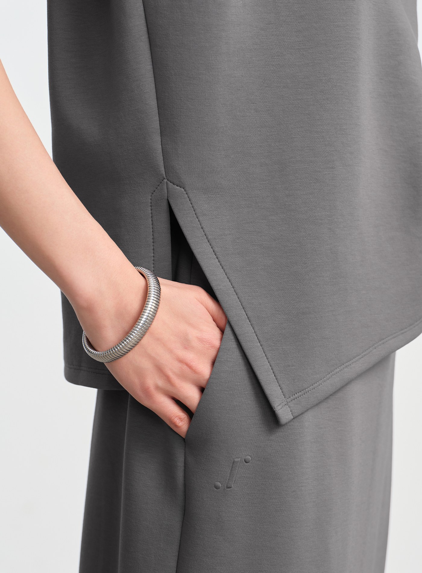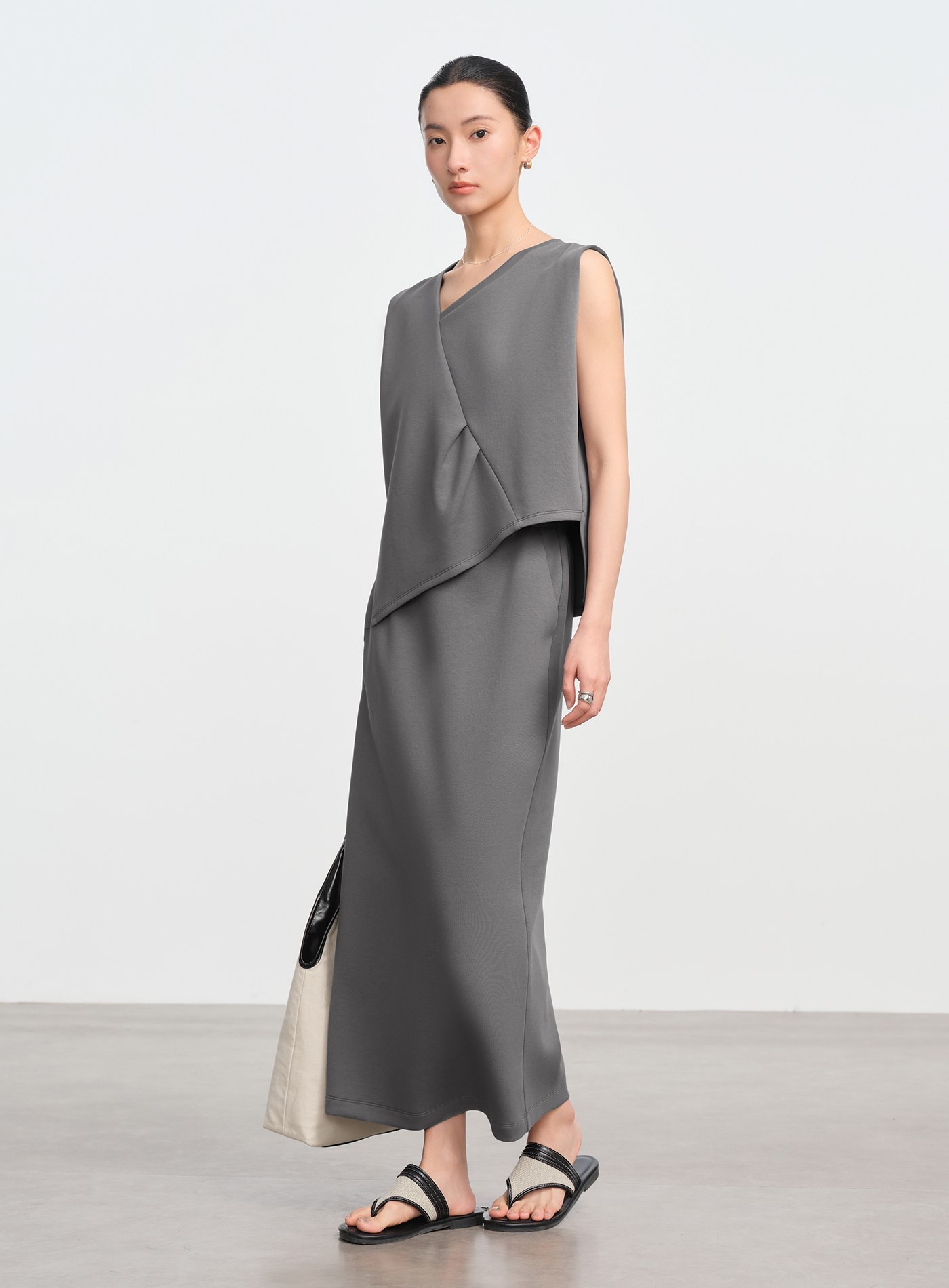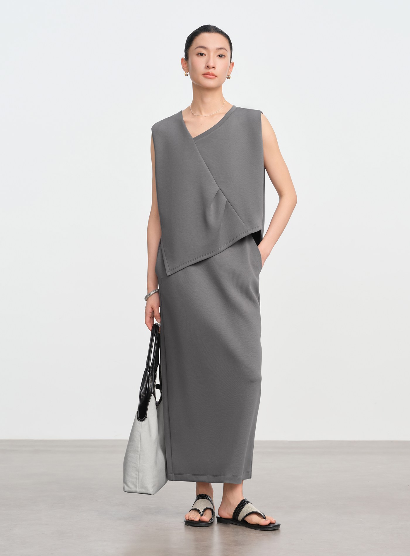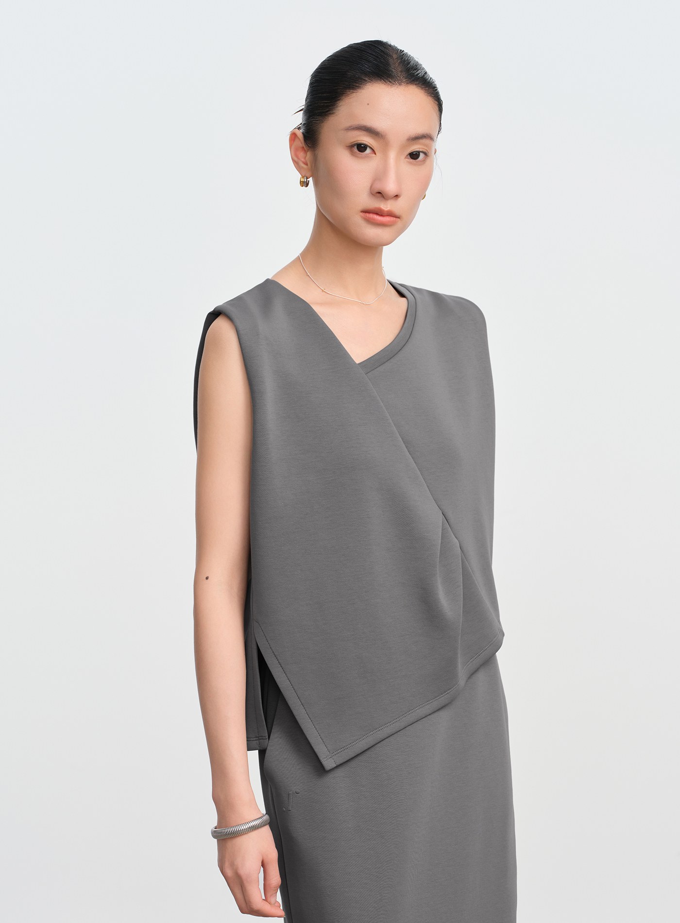 不對稱領彈力綁帶長袖襯衫$63 USD