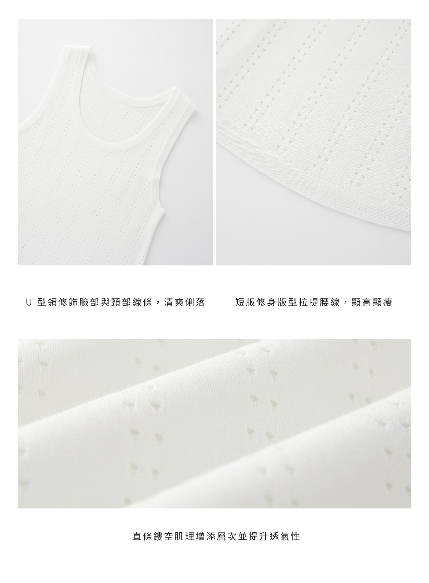 - 經典 U 型領無袖版型自然展露鎖骨,清爽中帶細膩小性感