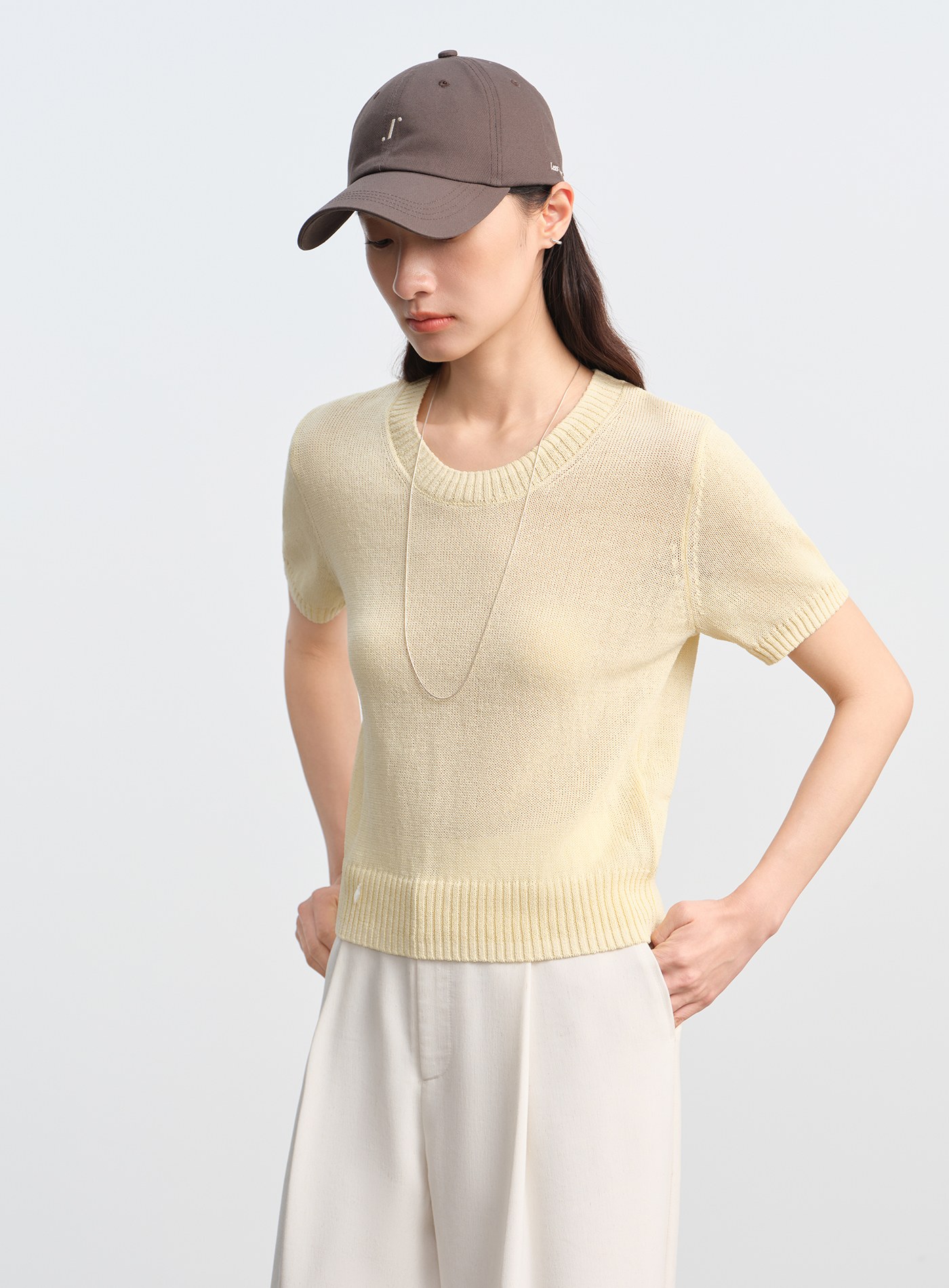 - 經典圓領設計修飾臉型,短版衣長搭配鬆緊下擺,精準拉提腰線,優化整體比例