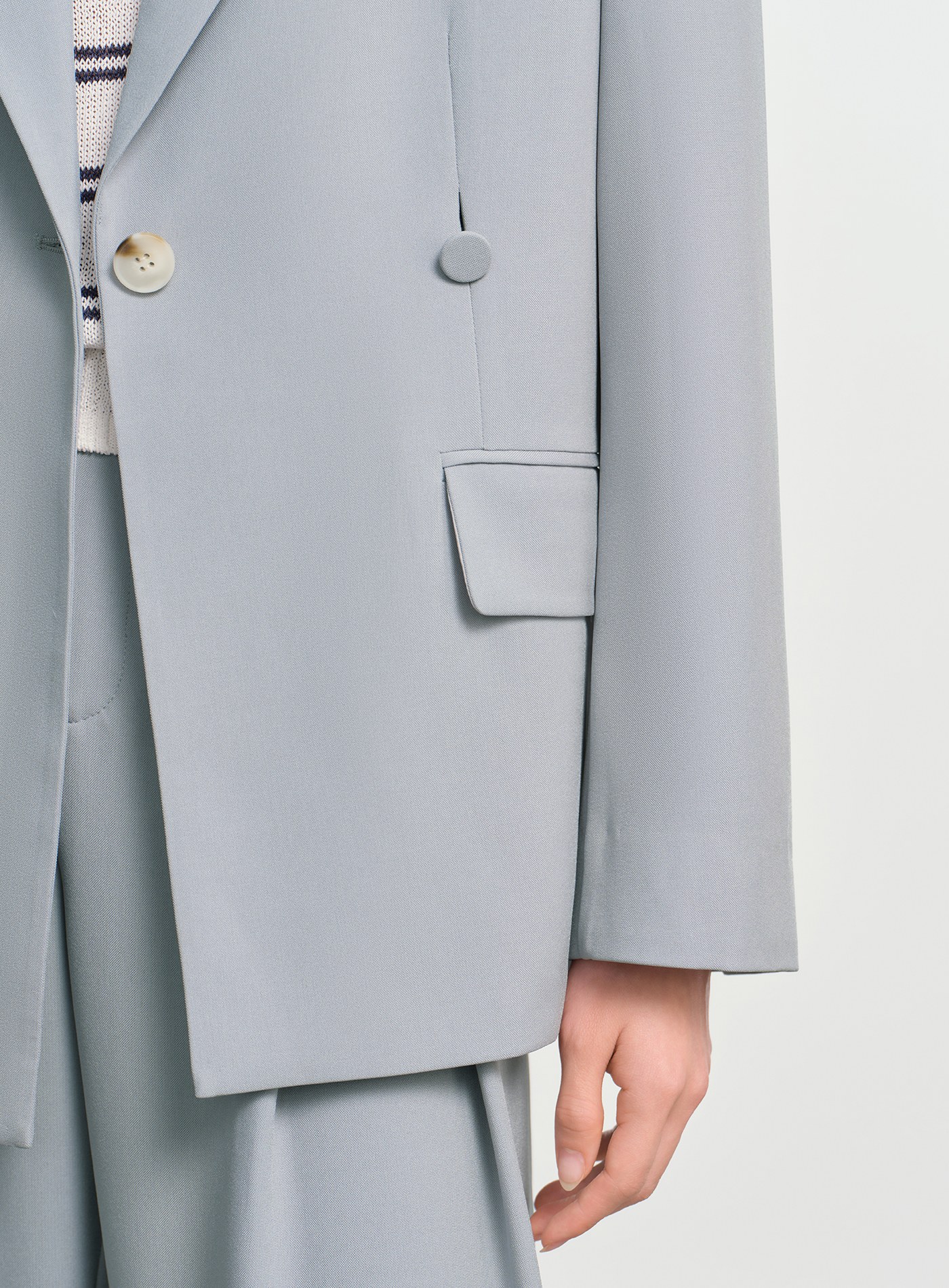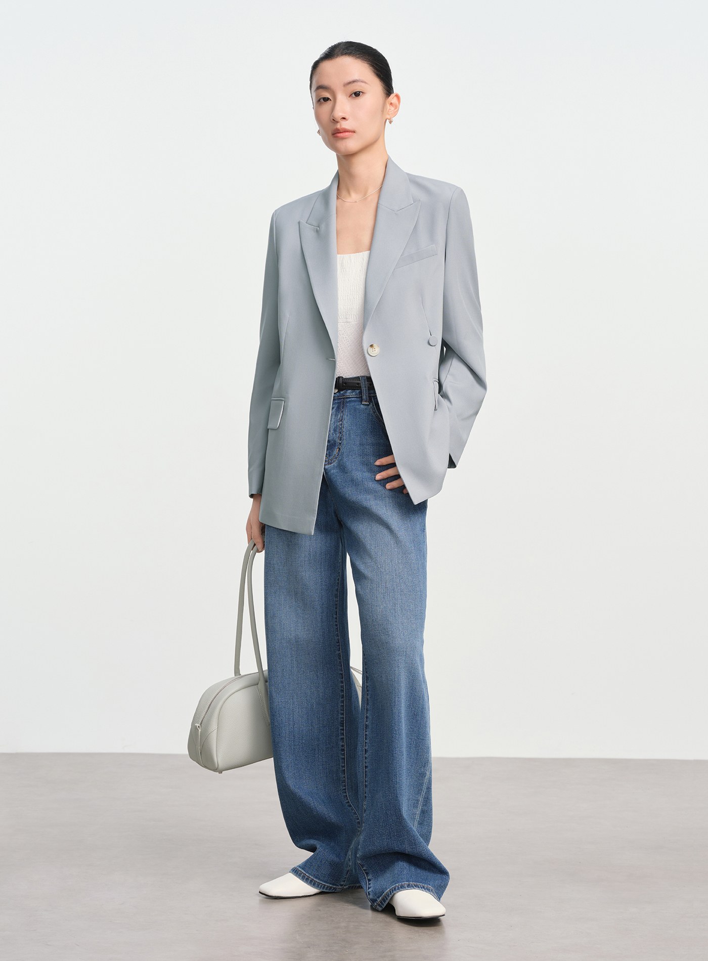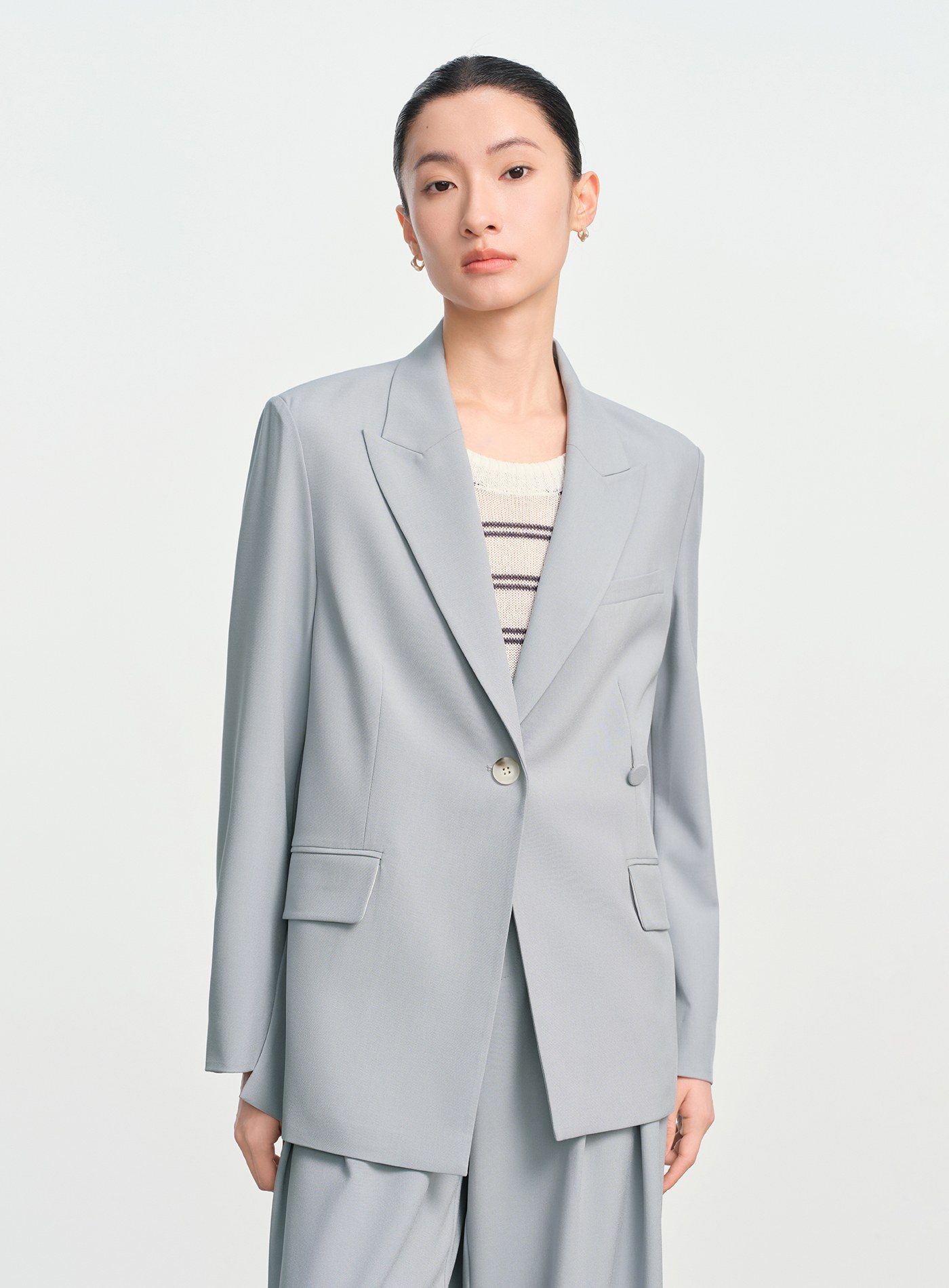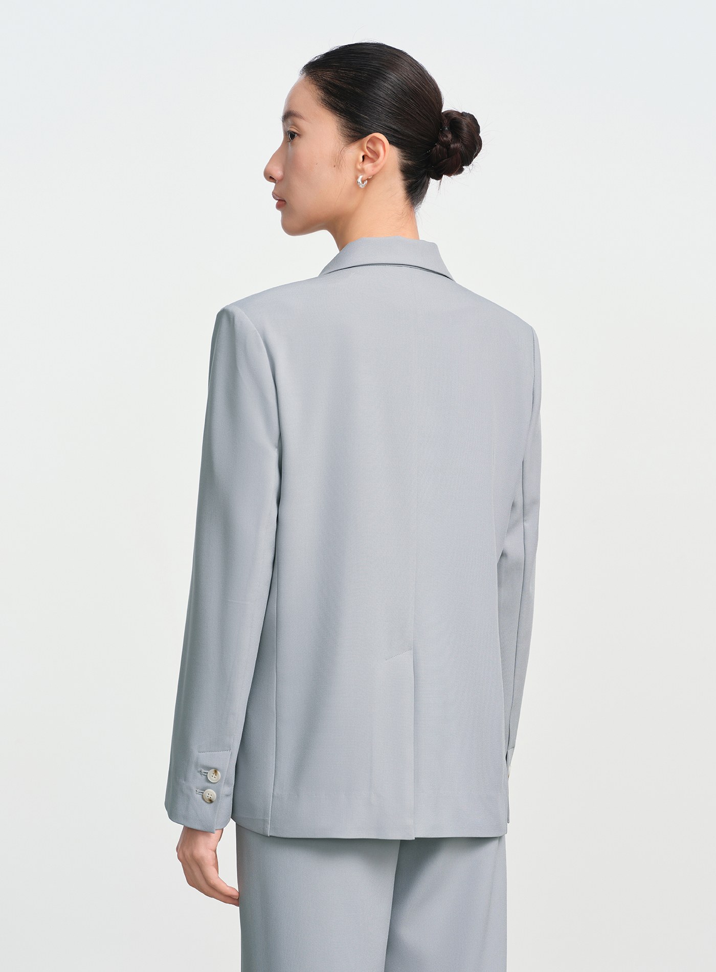 - 寬鬆版型線條流暢,單扣門襟搭配可拆式包布腰扣,既能收腰又能寬鬆穿搭,造型感十足