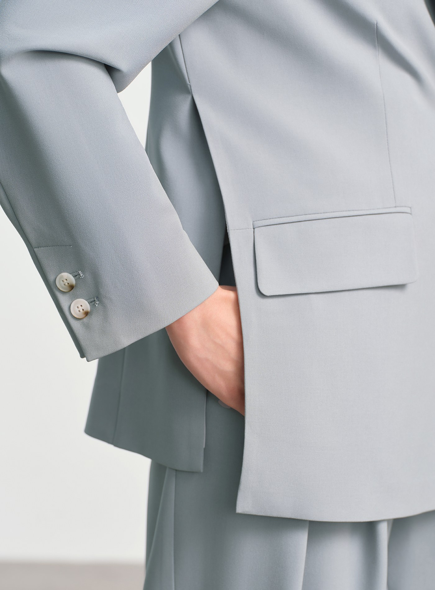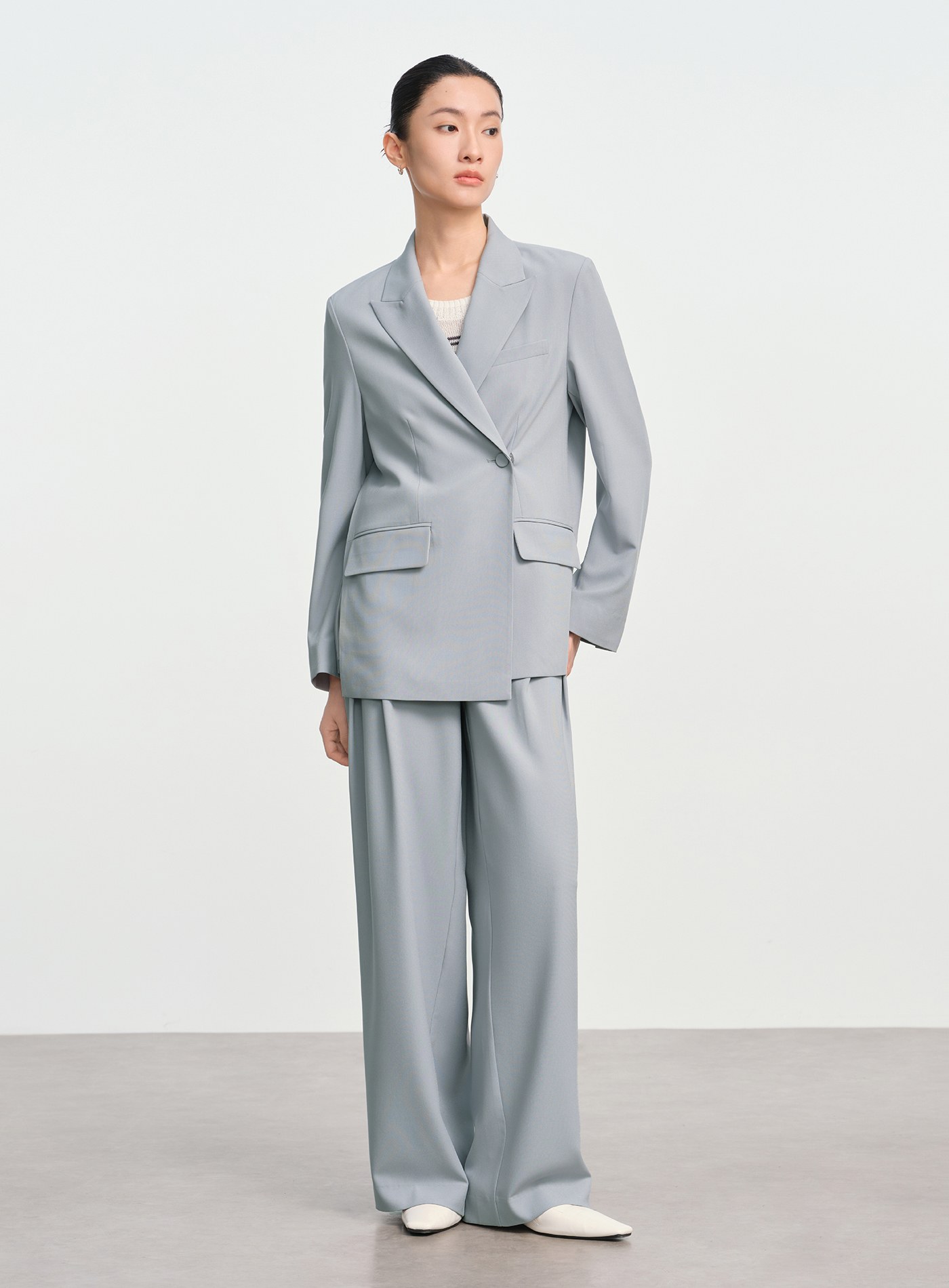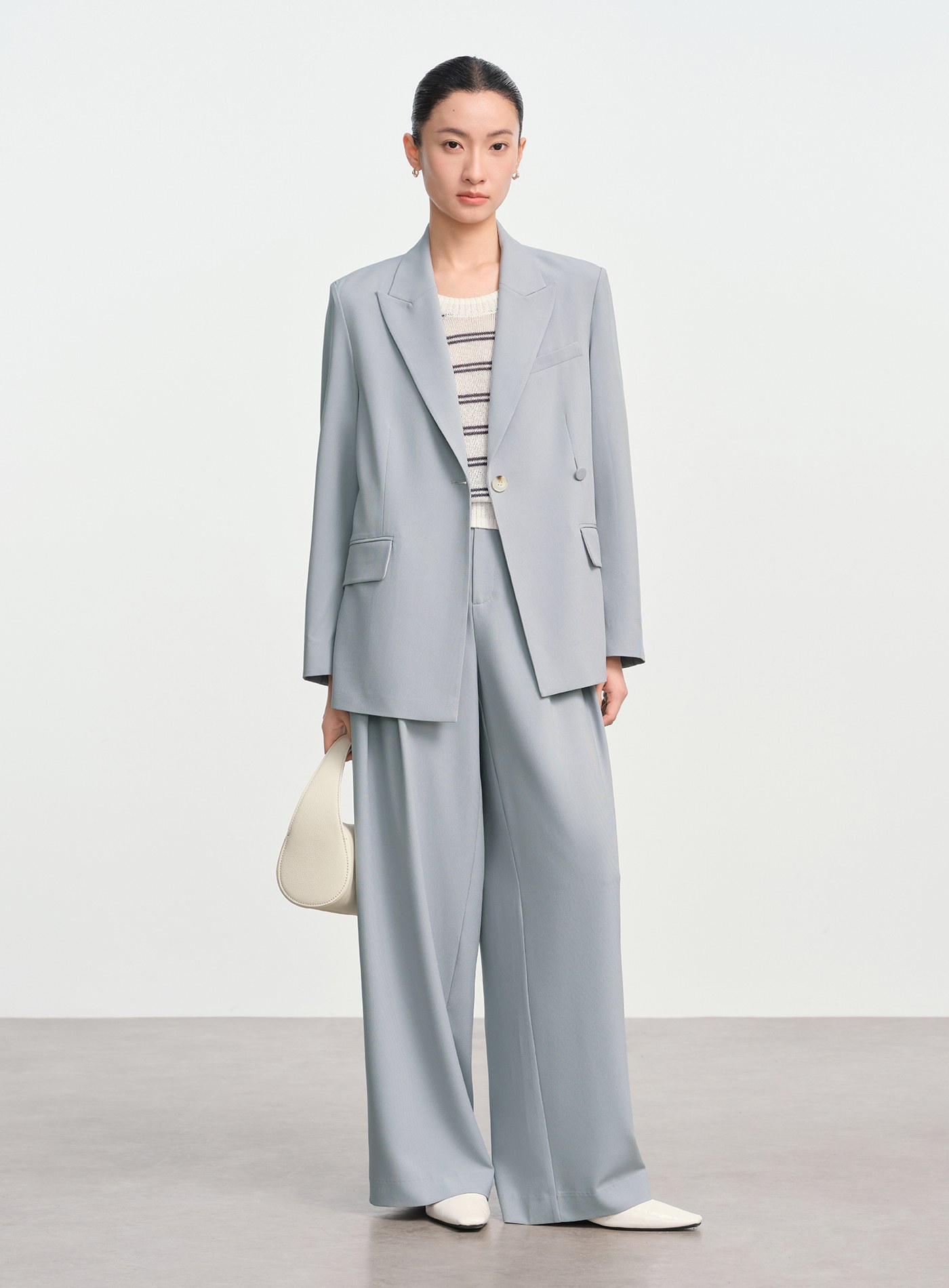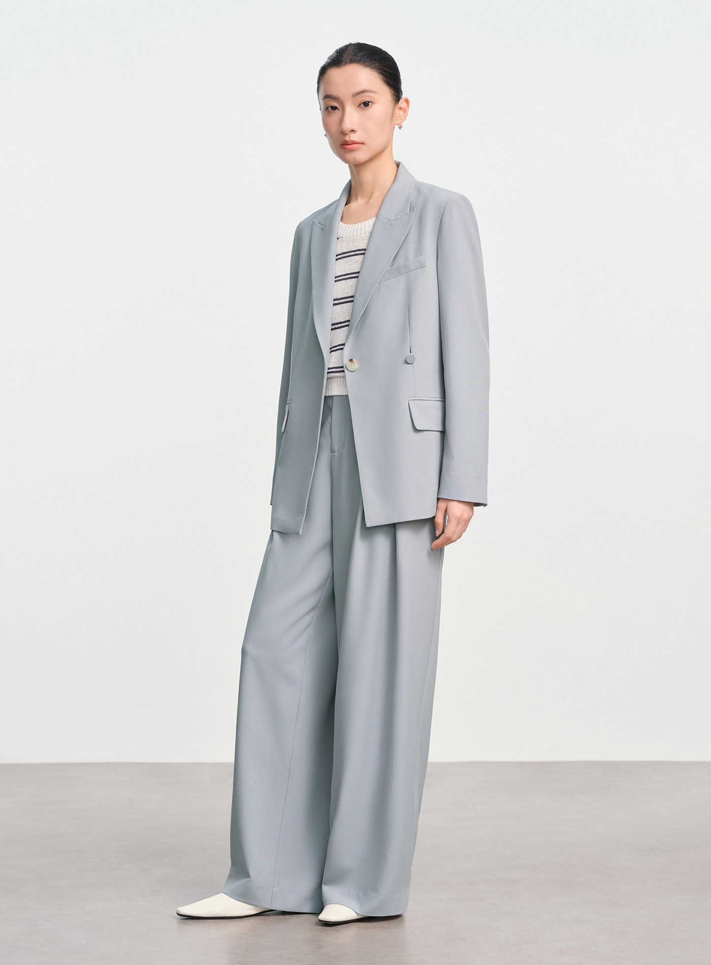 - 寬鬆版型線條流暢,單扣門襟搭配可拆式包布腰扣,既能收腰又能寬鬆穿搭,造型感十足