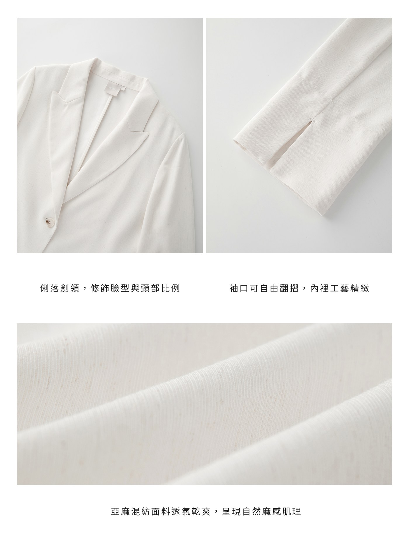 - 創新混紡面料具備抗皺、垂墜與細緻光澤,清爽透氣,特別適合台灣的濕熱氣候