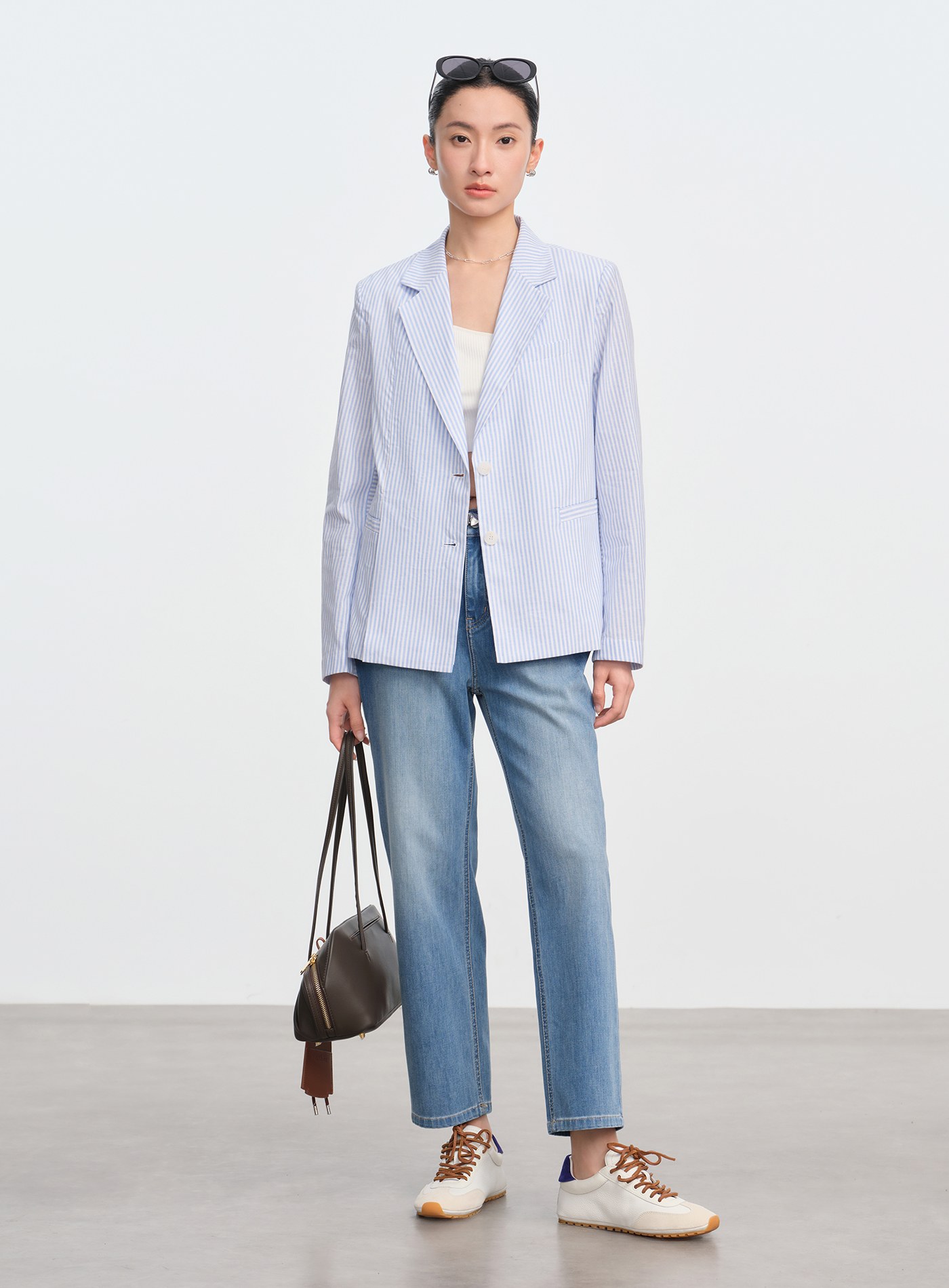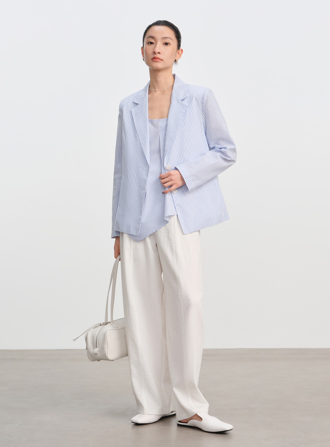 - 整體以輕量化結構呈現舒適鬆弛的穿著感,作為輕外套或日常西裝均能從容駕馭
