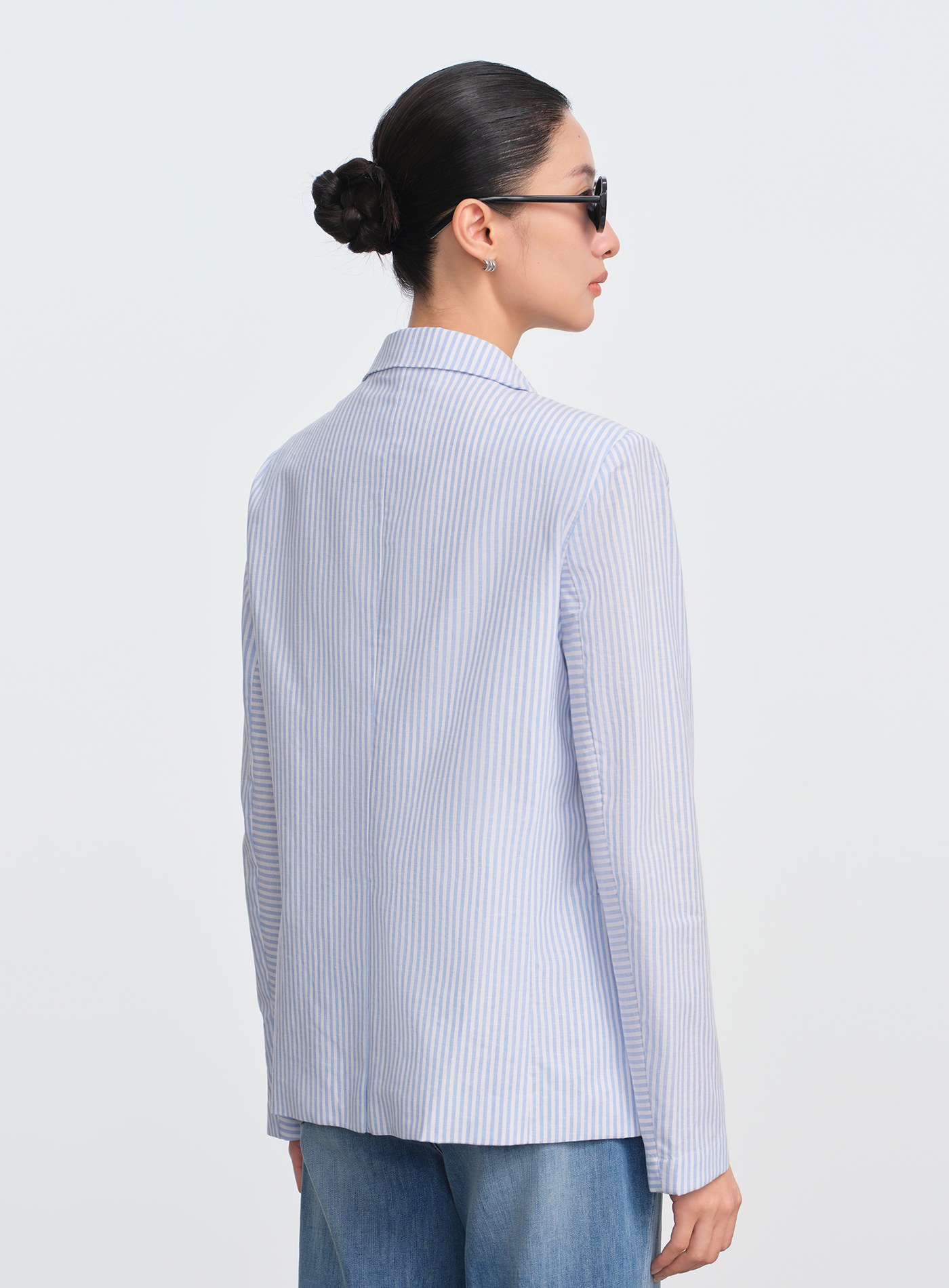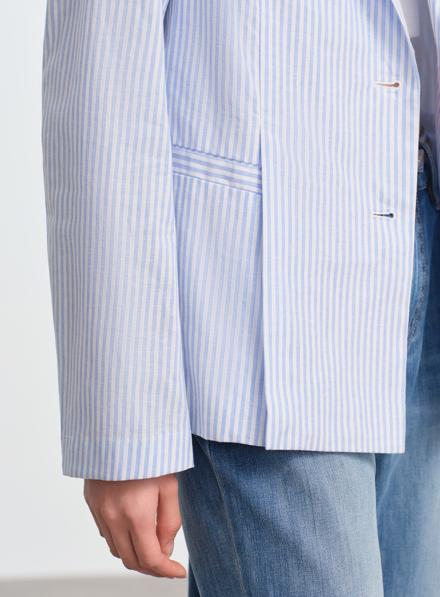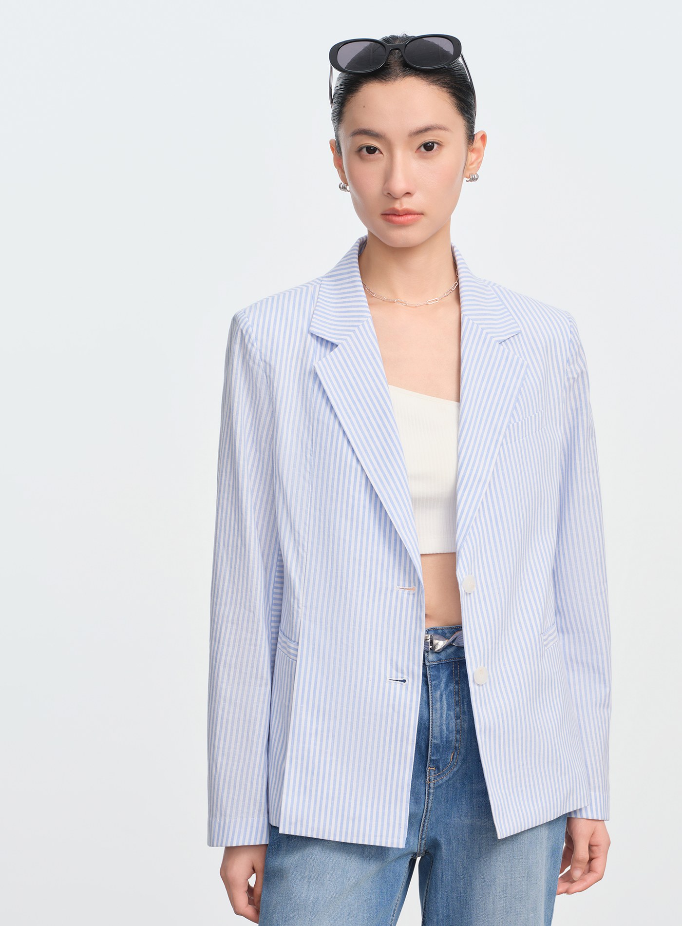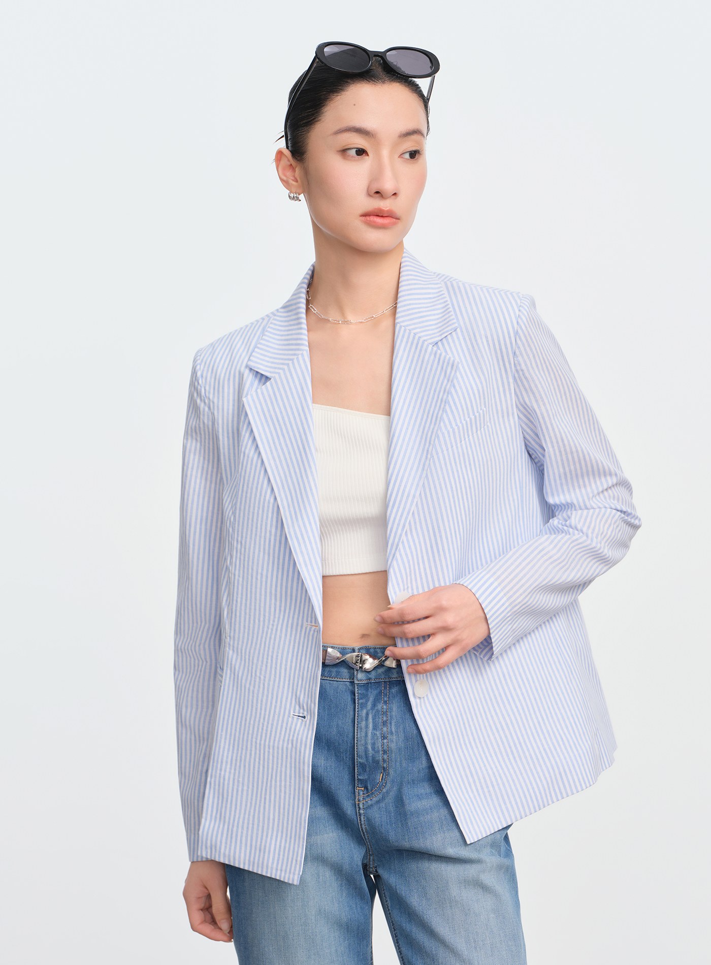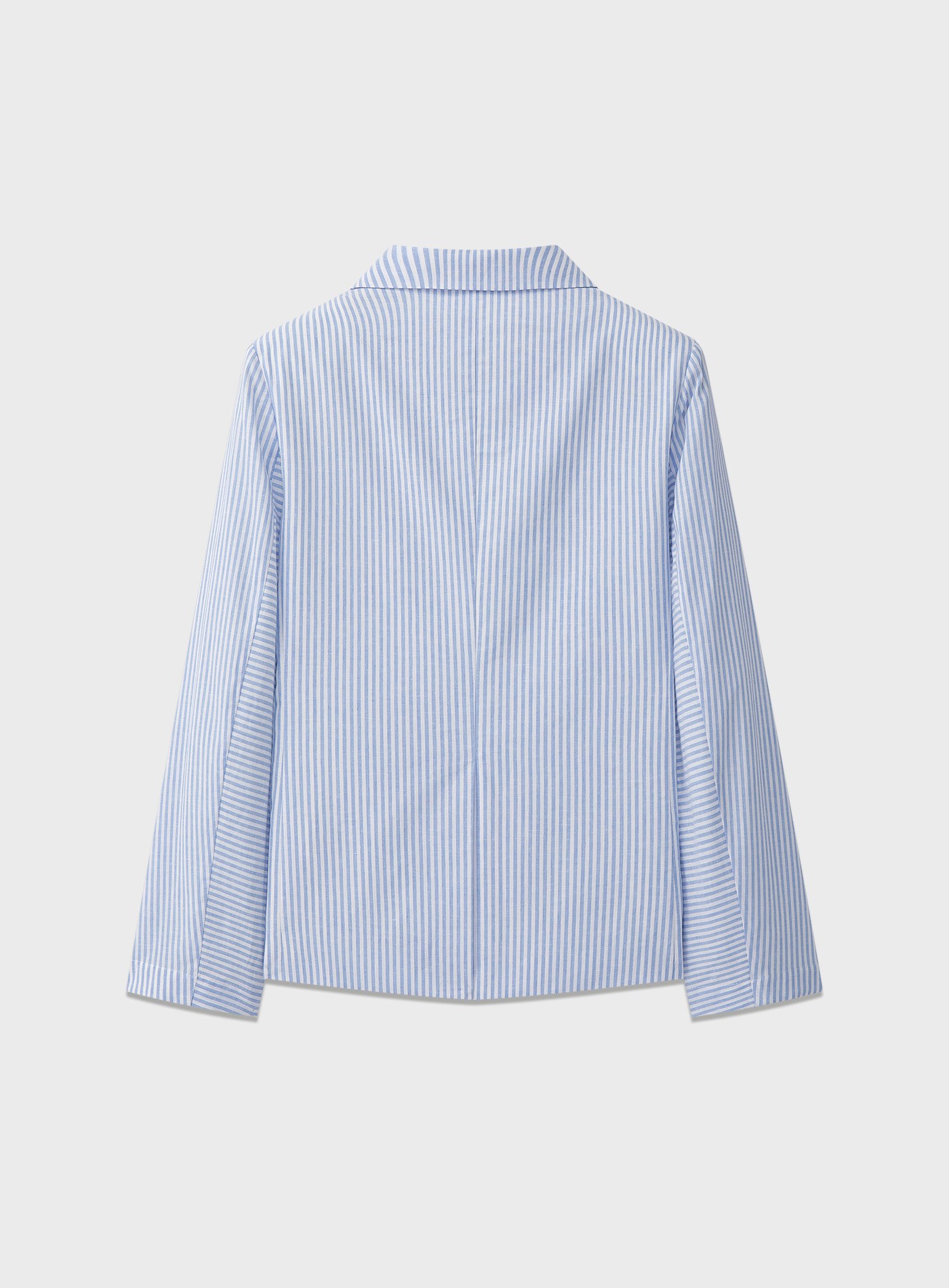 - 袖管與袖口以不同方向的藍白條紋拼接,視覺如同海與天交會清爽涼意