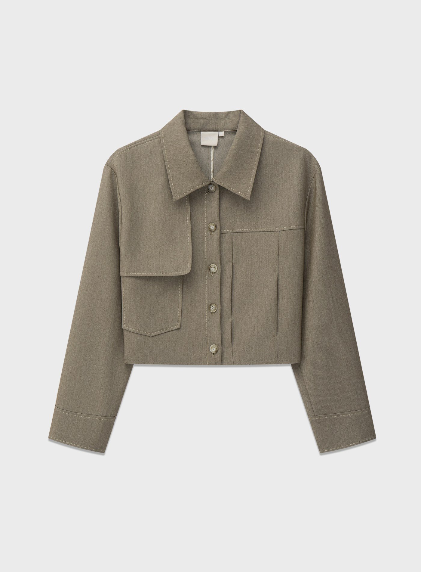 - 不對稱前片與單側擋片搭配錯位口袋,打破傳統框架,展現隨性層次