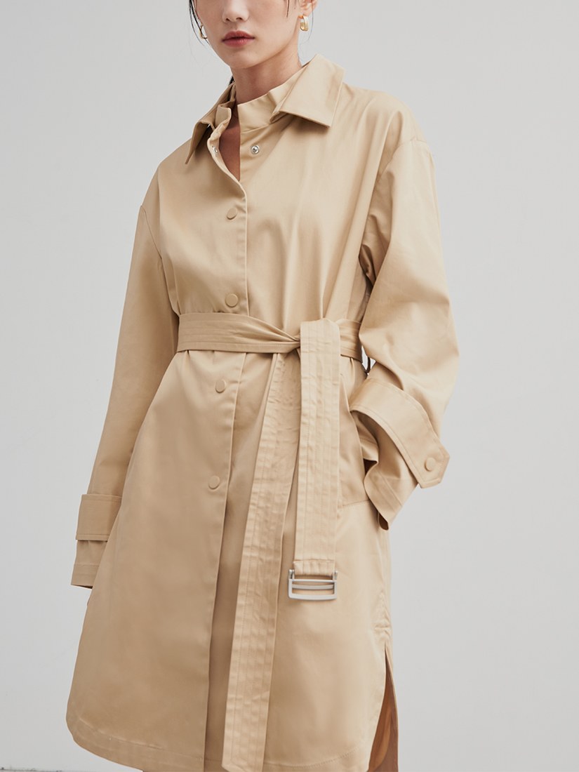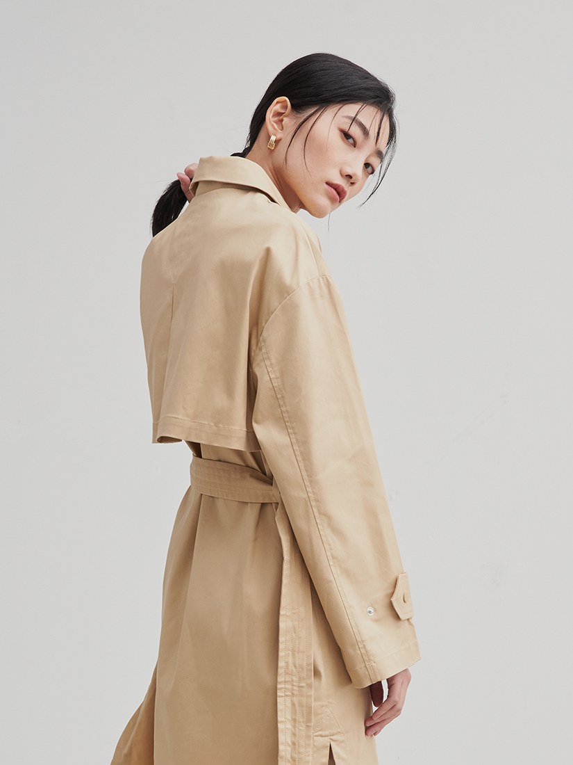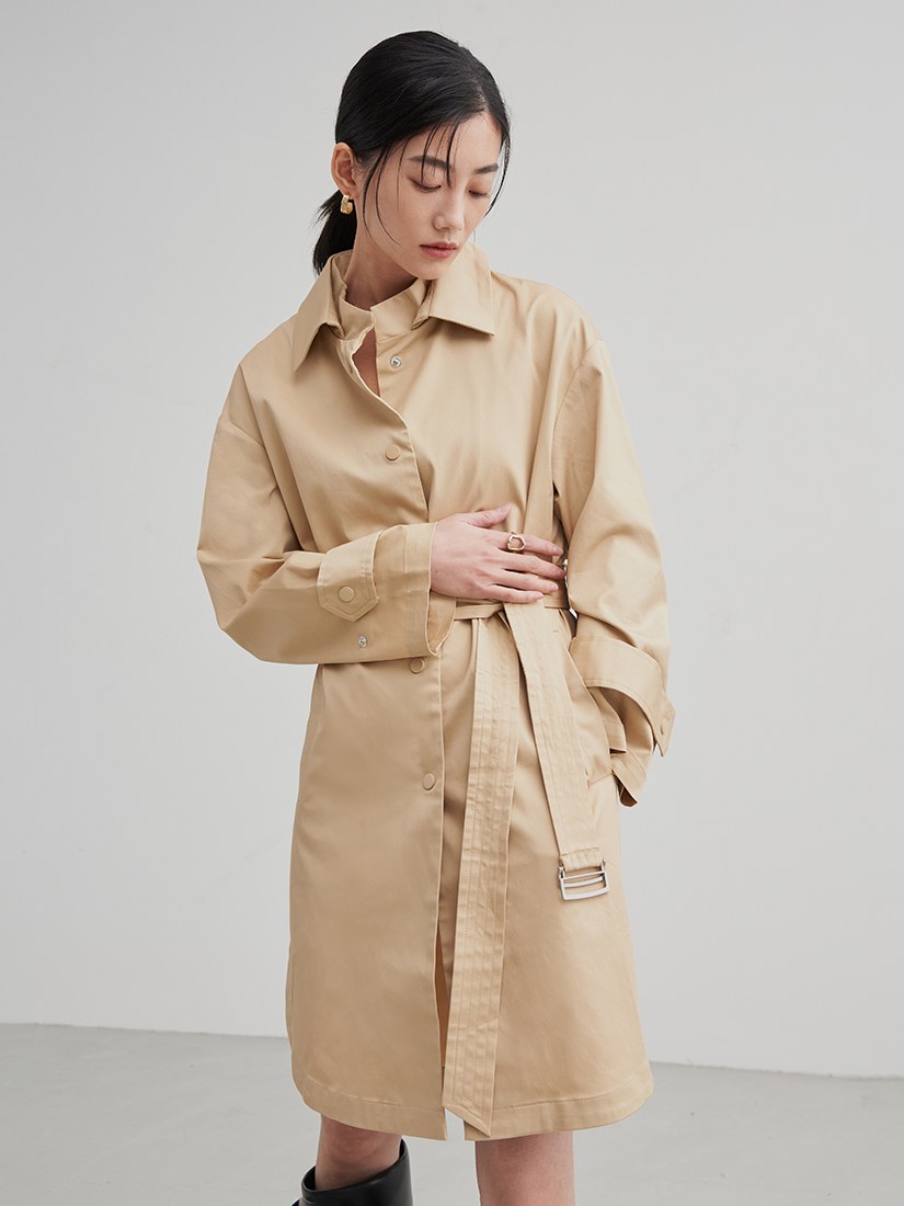率性長版綁帶風衣外套$105 USD