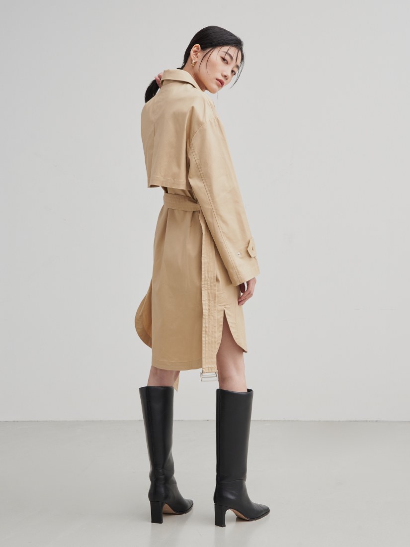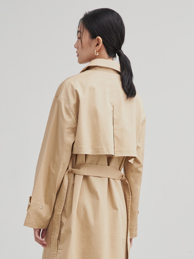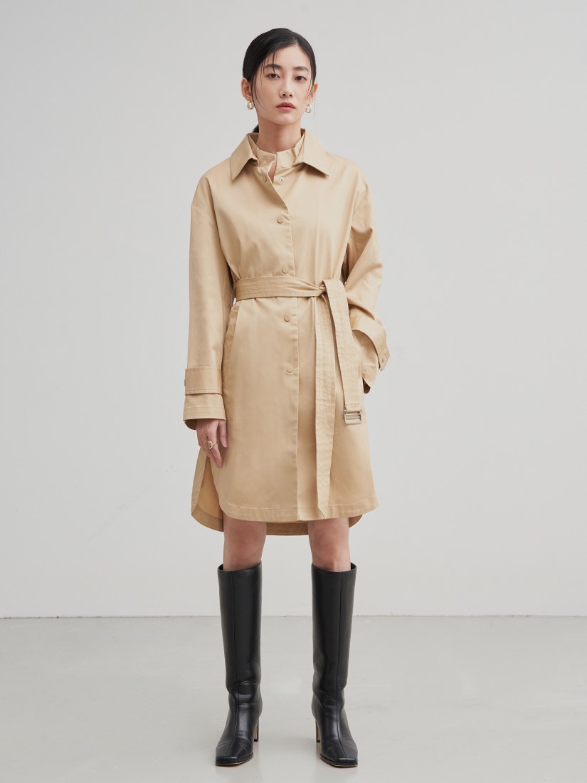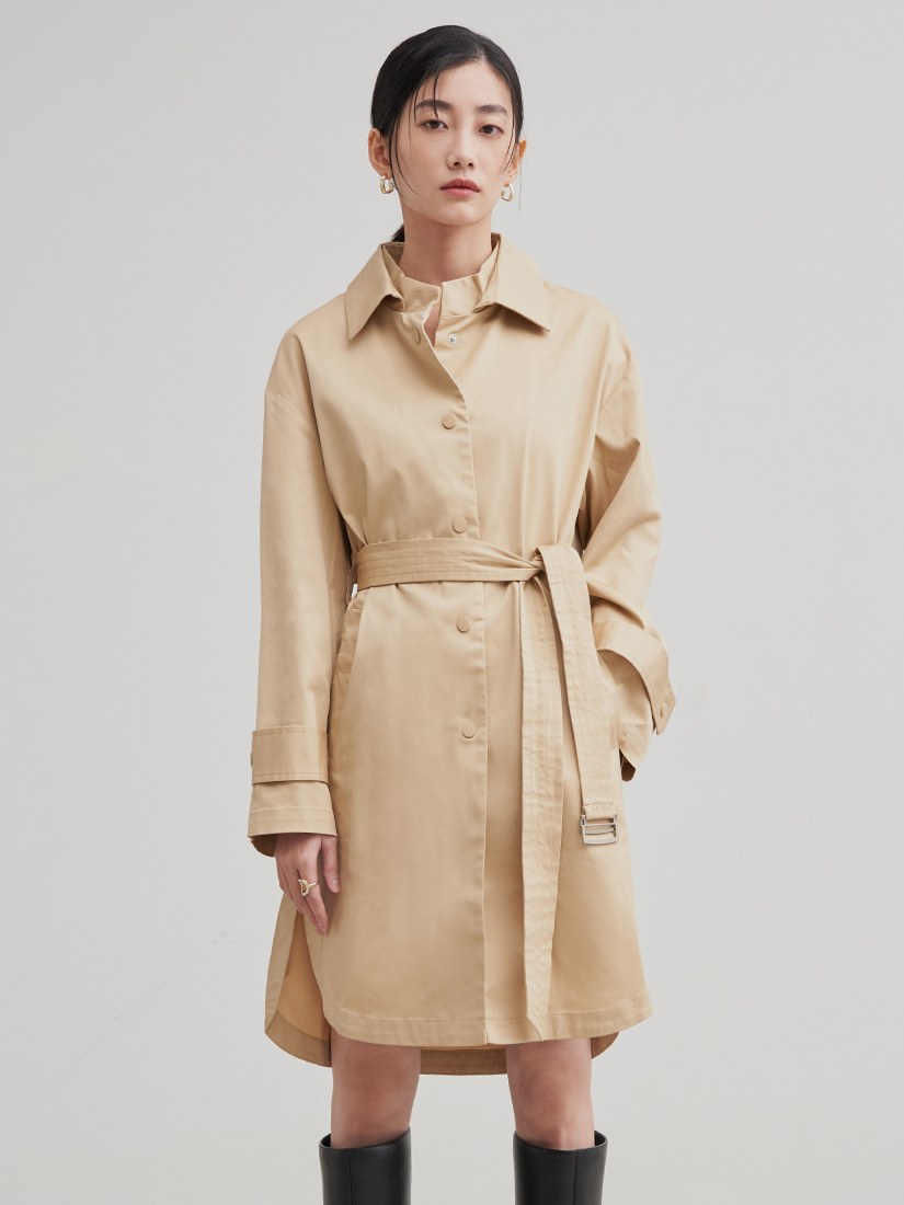 率性長版綁帶風衣外套$105 USD