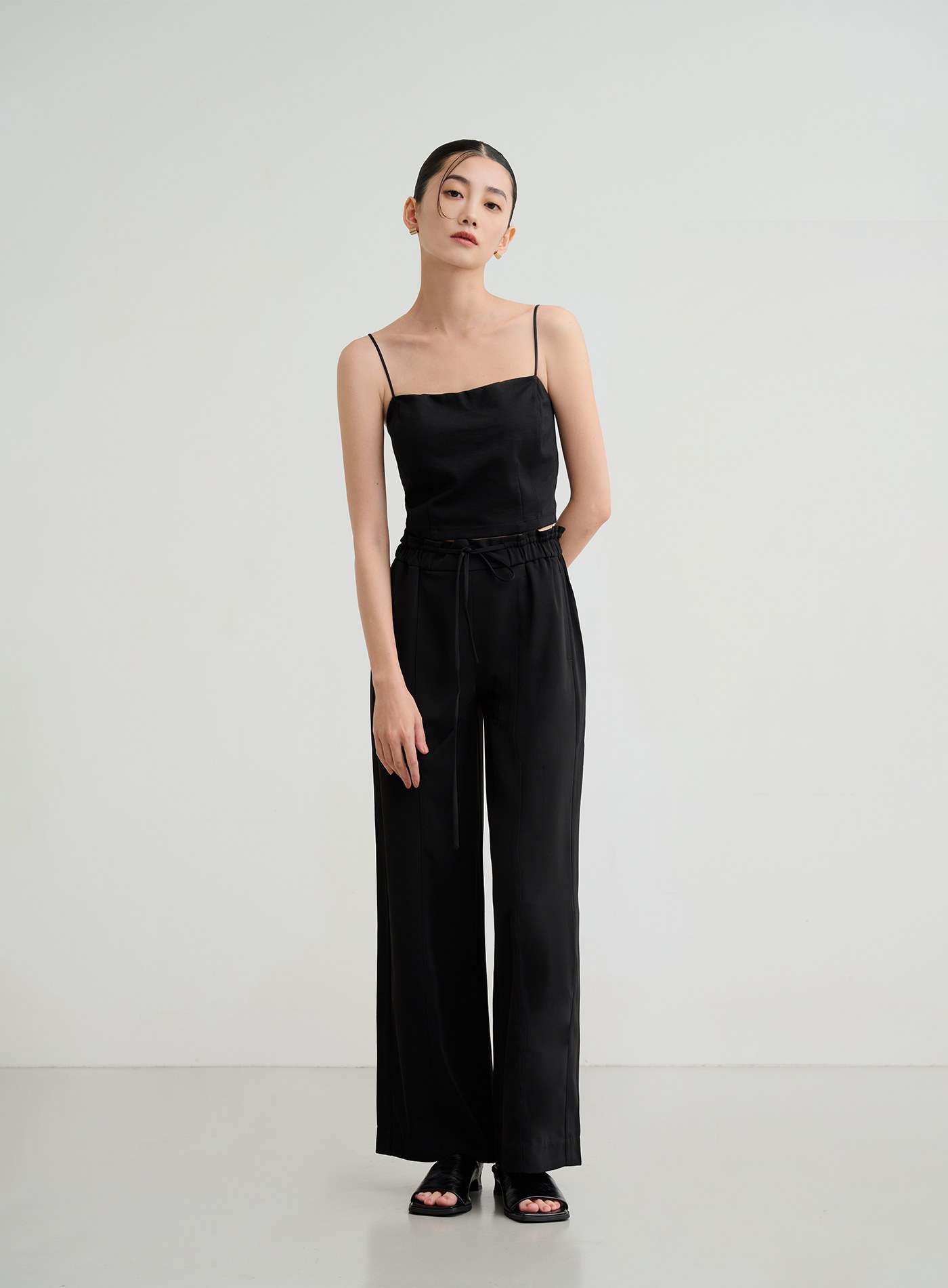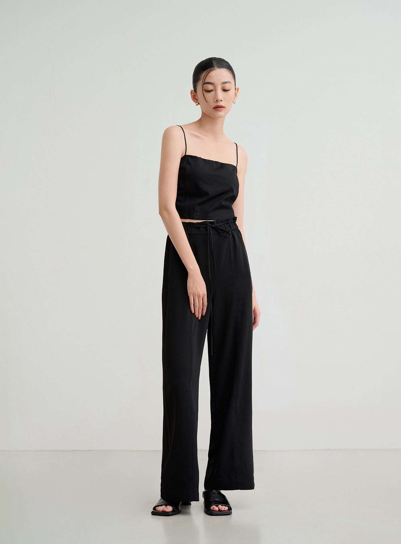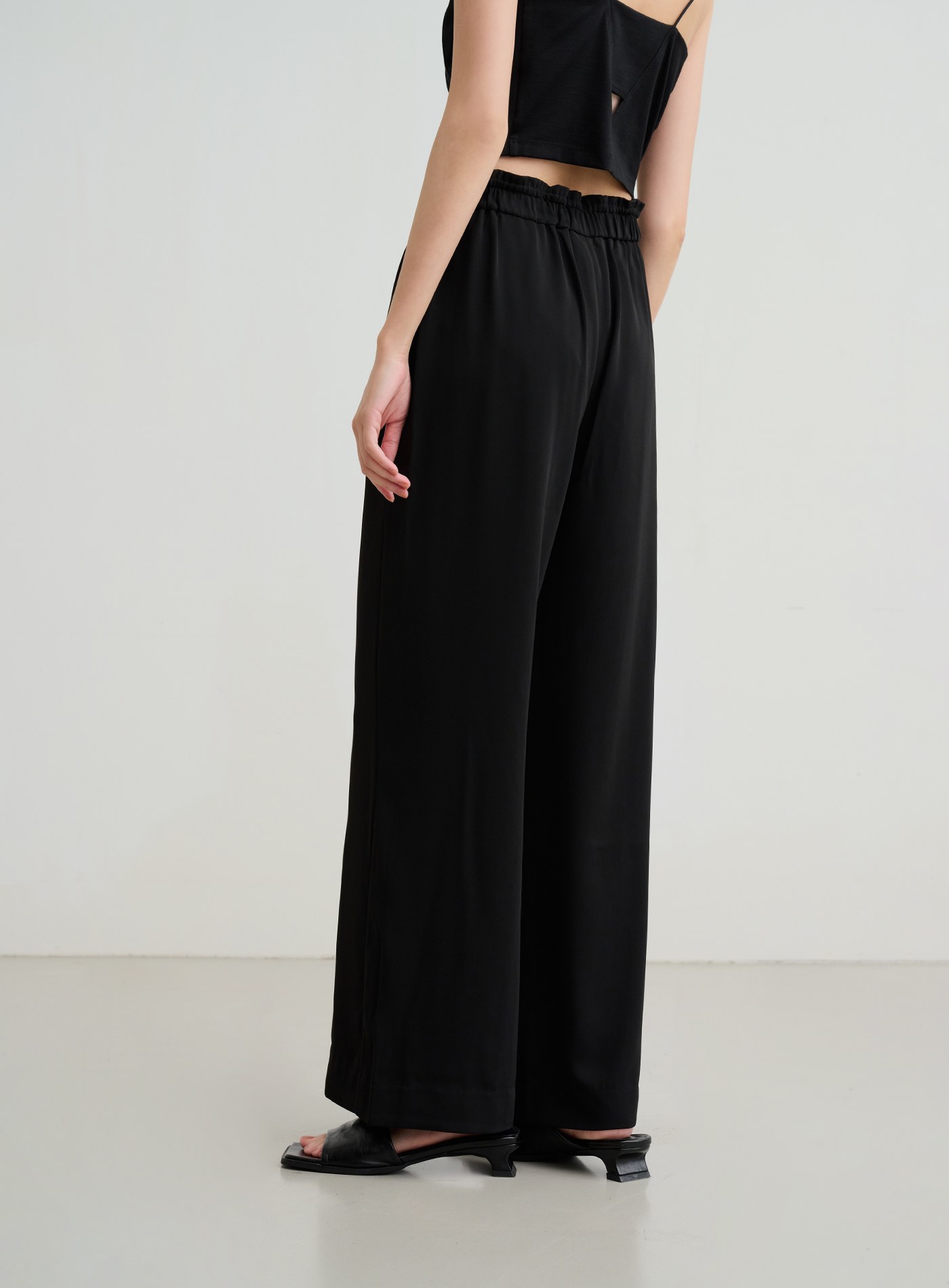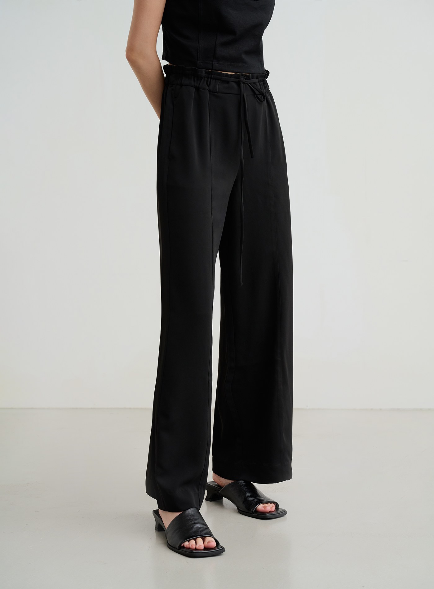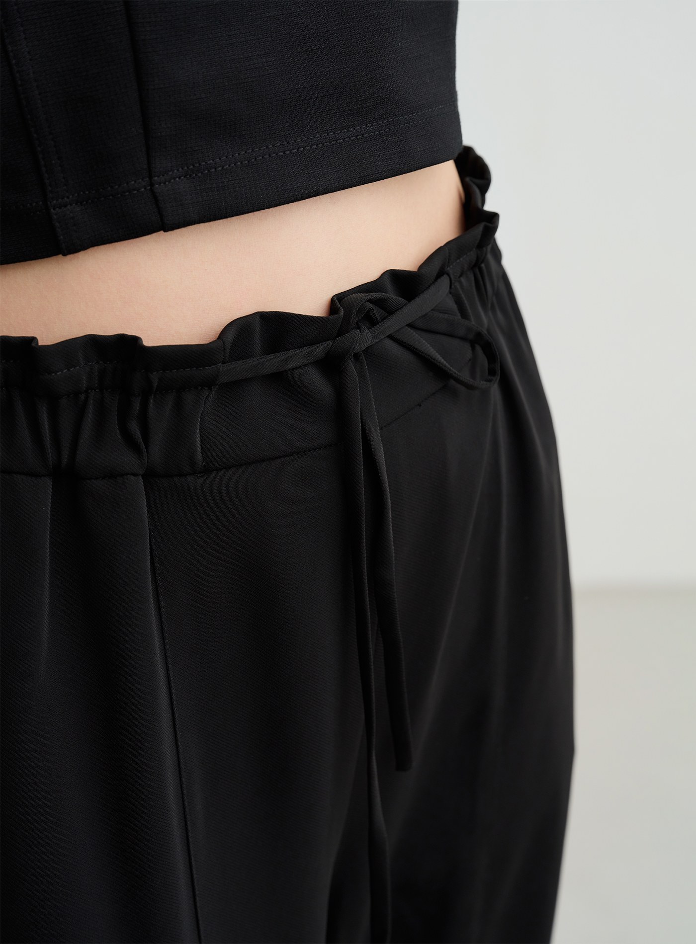 微光澤腰頭鬆緊休閒寬褲$60 USD
