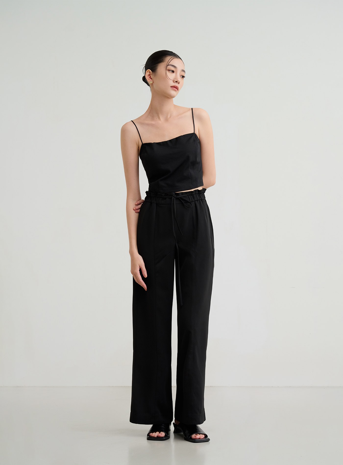 簡約不對稱腰頭直筒褲$63 USD