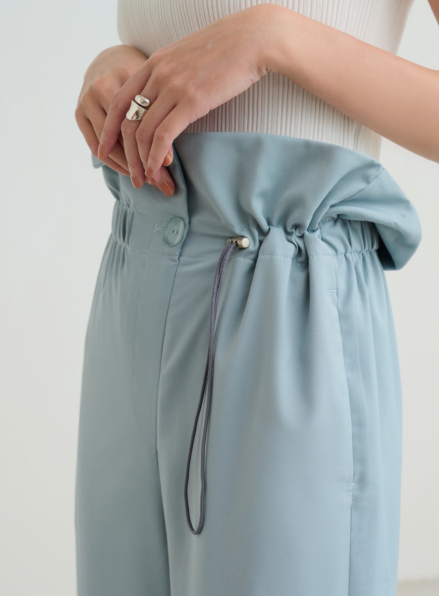 - 花苞束腰設計,運用抽繩束起褲頭,非常顯腰身