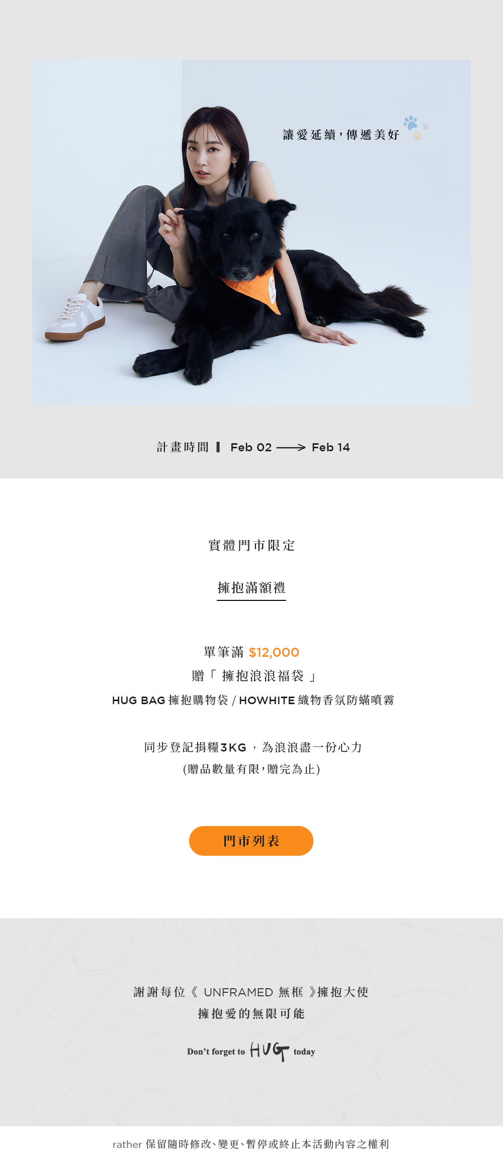 擁抱計畫《UNFRAMED 無框》門市擁抱浪浪福袋
